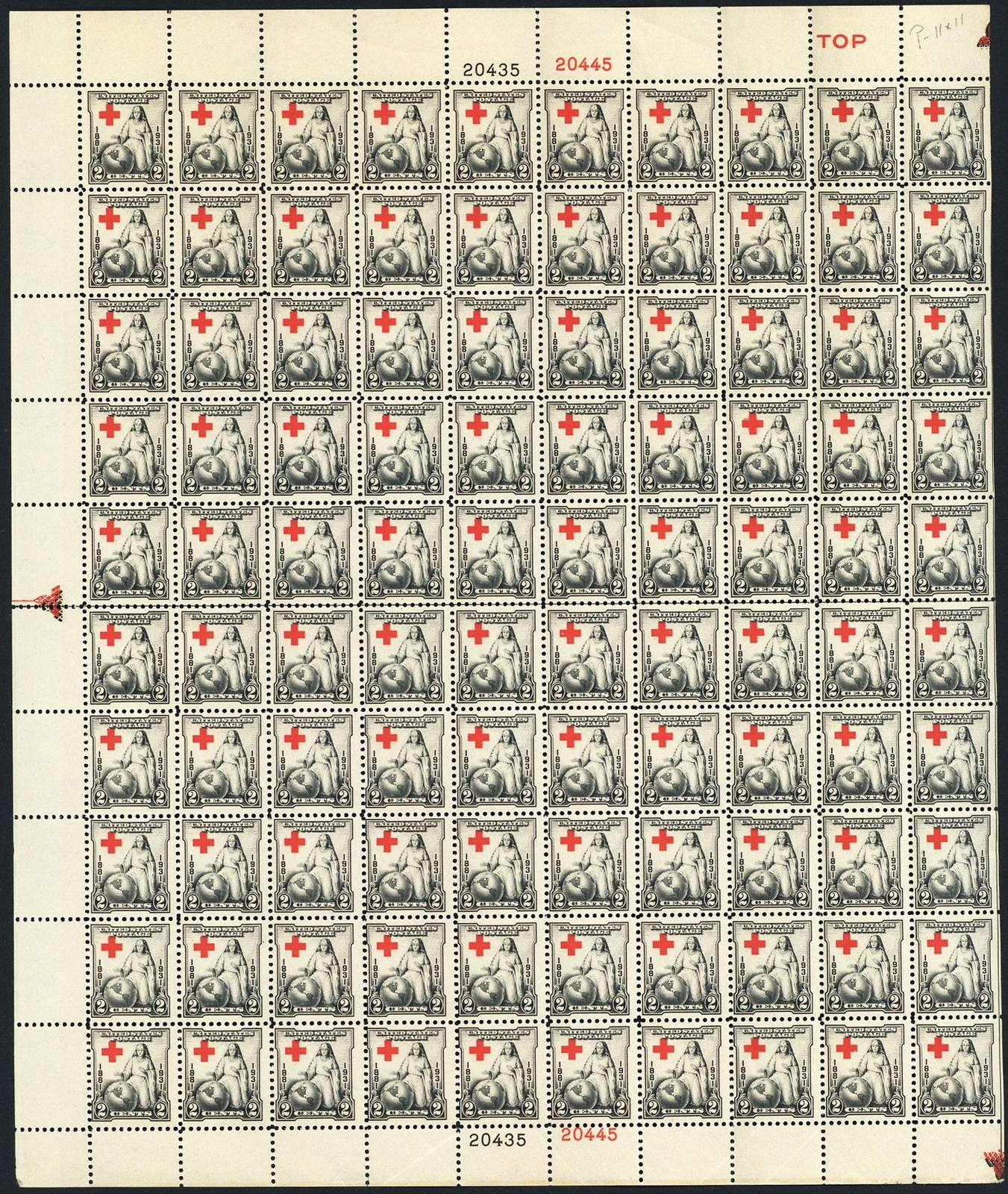 702, MNH Red Cross Shifted Up Error In Complete Sheet of 100 - Stuart Katz