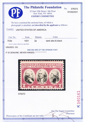 703b, Dark Lake & Black - Mint VF NH With PFC Certificate - Stuart Katz