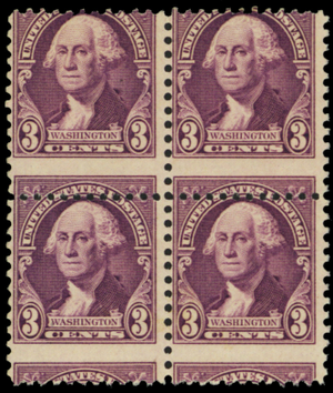 720, Mint NH 3¢ Freak Error Misperf Block of Four - Stuart Katz