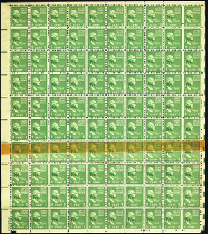 804, MNH 1¢ Double Paper And Tape Splice Error In Full Sheet - Stuart Katz