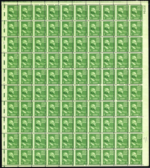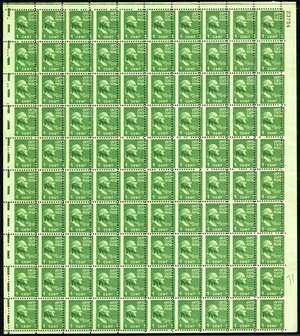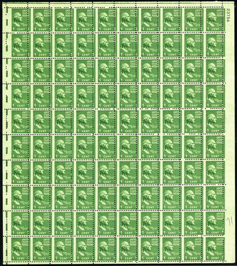 804, MNH 1¢ Washington Misperfed ERROR Sheet of 100 Stamps - Stuart Katz