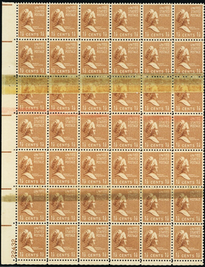 805, Rejection Mark Double Paper & Tape Splice Block of 42 Error - Stuart Katz
