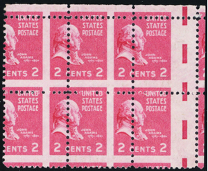 806, Mint 2¢ Two Way Misperforation Error Block of Six - Stuart Katz