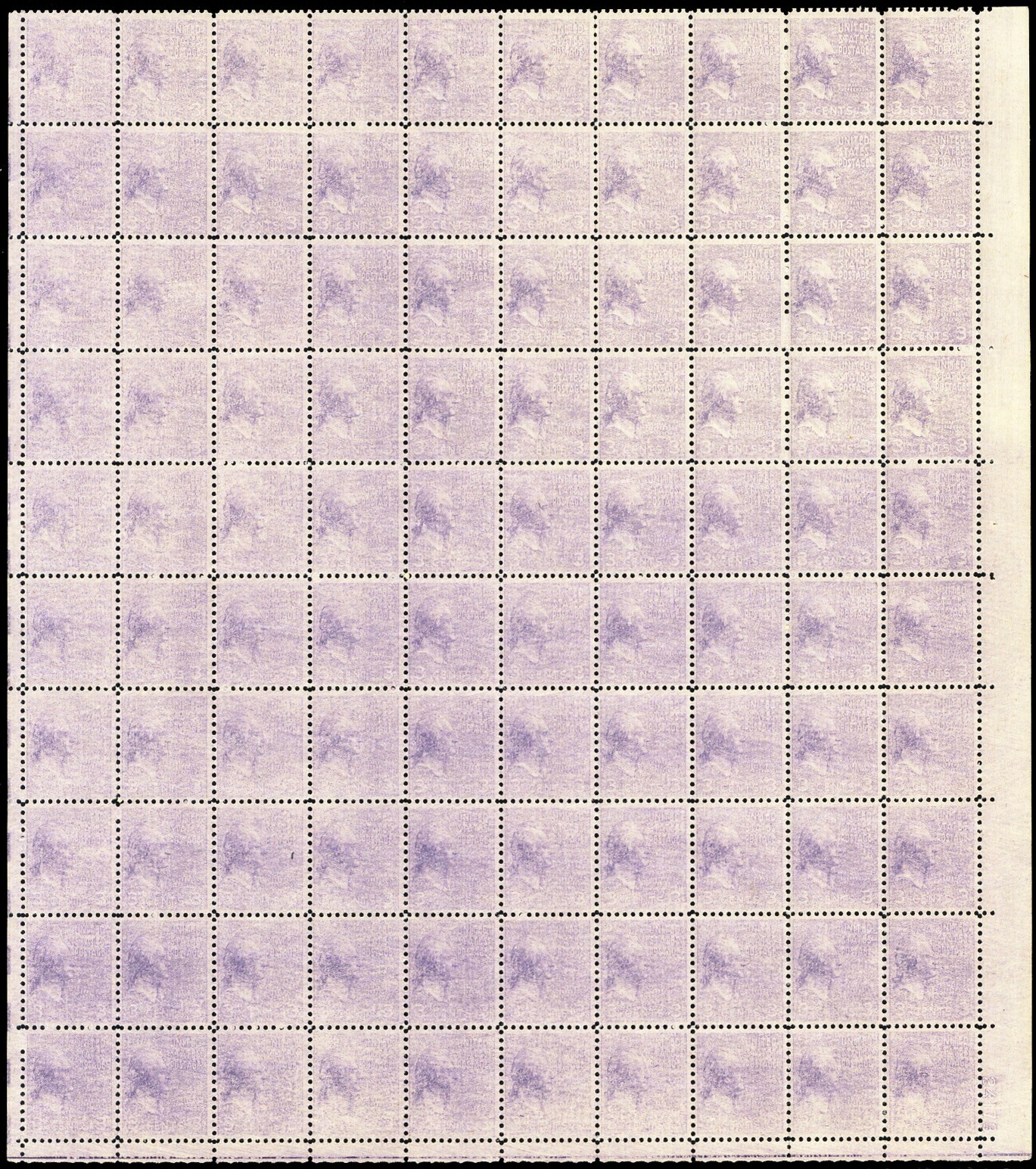 807, Mint NH 3¢ Drastic Under Inking Full Sheet of 100 Stamps - Stuart Katz