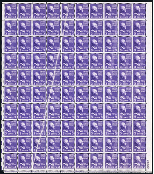 807, Mint NH 3¢ Sheet With Pre Printing Paper Fold Error * Stuart Katz