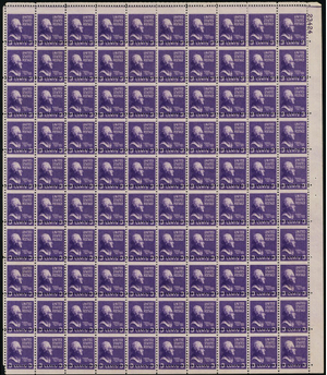 807, Mint NH Full Misperfed Sheet of 100 Stamps Great EFO - Stuart Katz