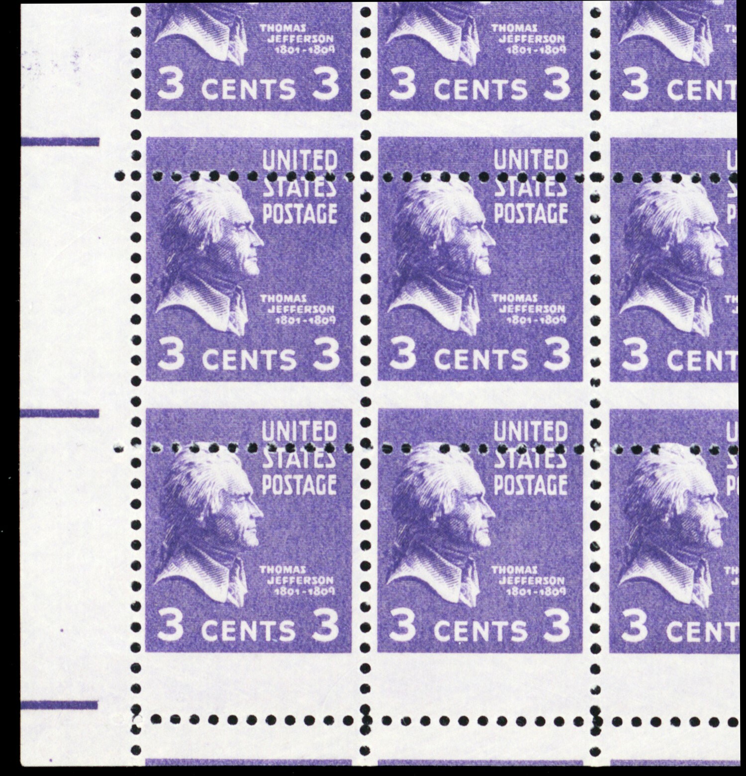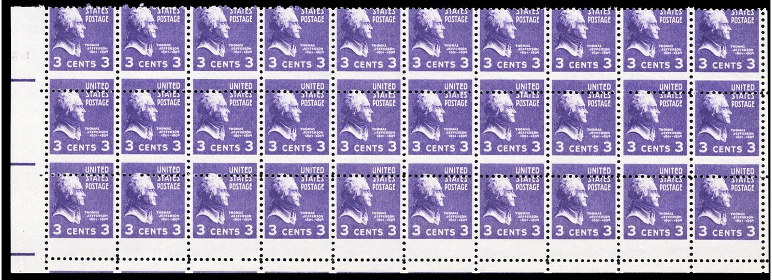 807, MNH 3¢ Misperforated Freak Error - Block of 30 Stamps *- Stuart Katz