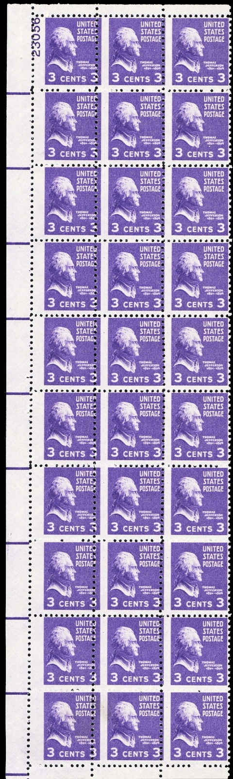 807, MNH 3¢ Misperforated Freak Error - Block of 30 Stamps -*- Stuart Katz