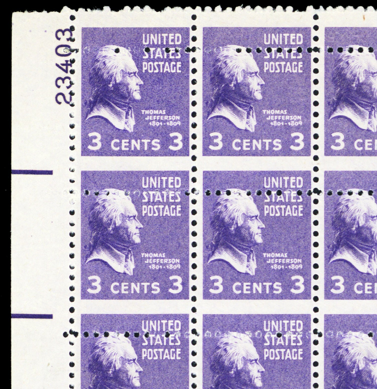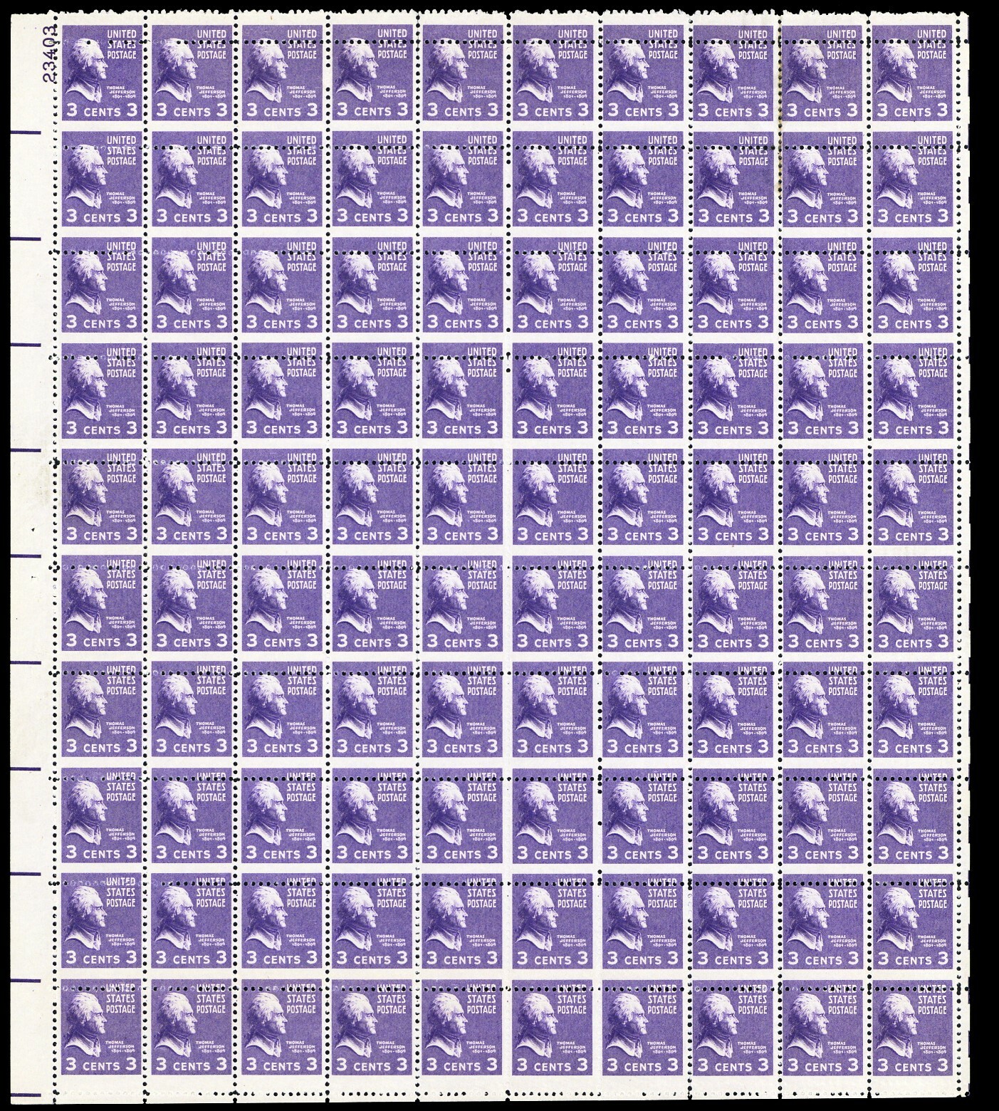 807, MNH 3¢ Misperforated Freak Error - Sheet of 100 Stamps -- Stuart Katz