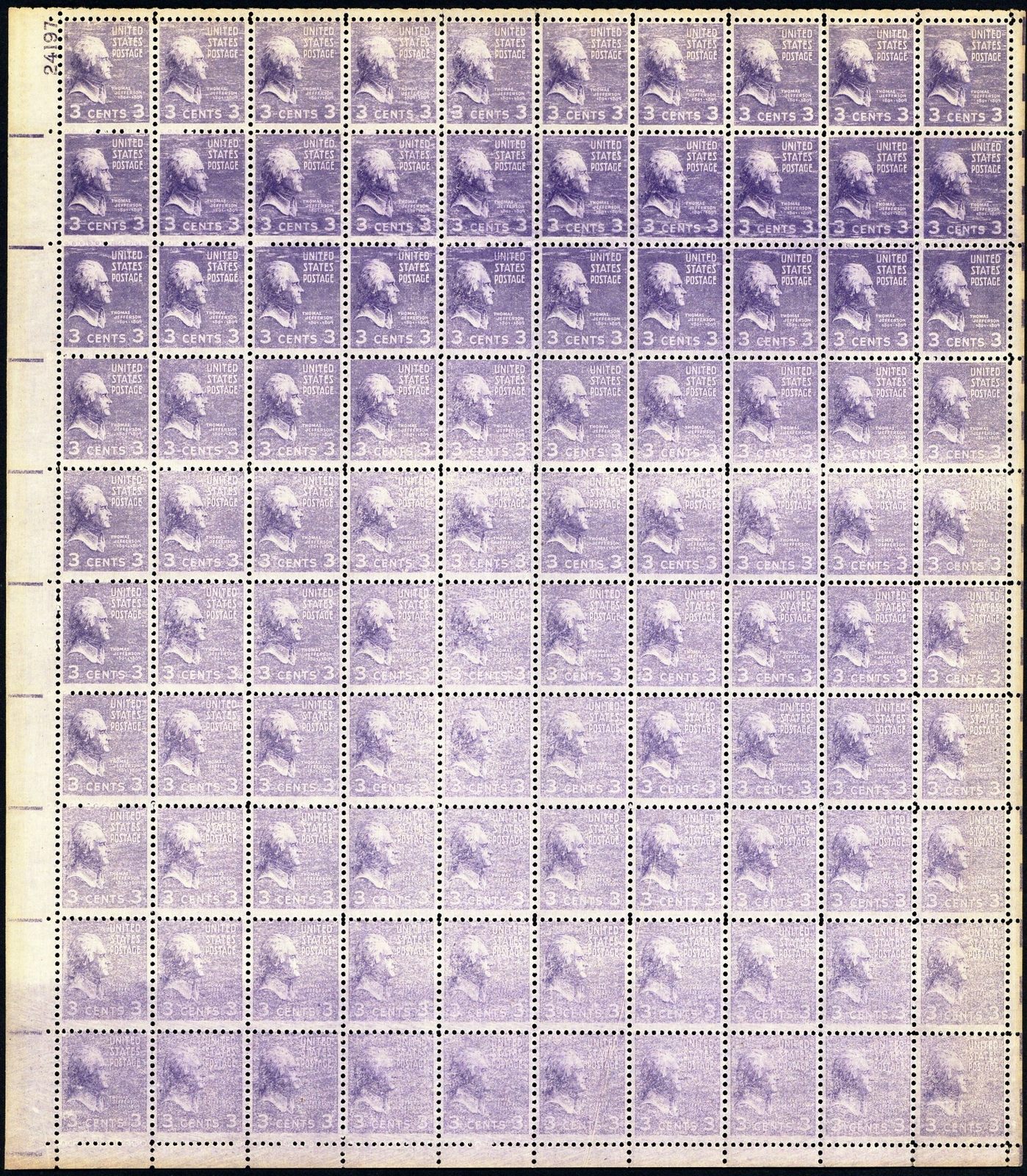 807, MNH 3¢ Under Inked Error In Complete Sheet of 100 - Stuart Katz