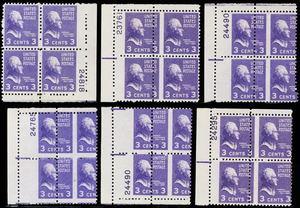 Five blocks are LH on top stamps and NH on bottom stamps.