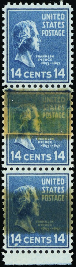 819, RARE 14¢ Tape Splice Strip of Three Stamps Mint NH - Stuart Katz