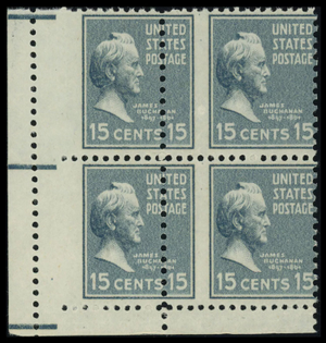 820, Mint NH/LH 15¢ - Misperfed Error Block * Stuart Katz