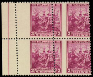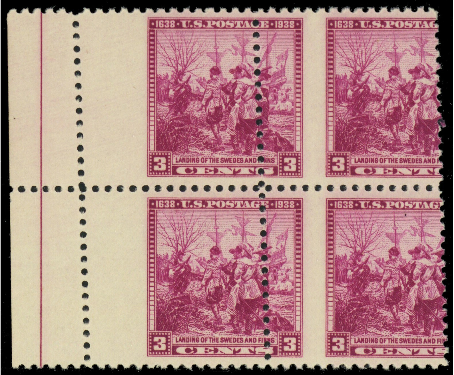 836, Mint NH 3¢ Scarce Early Misperforation Error Block of Four -- Stuart Katz