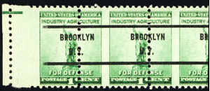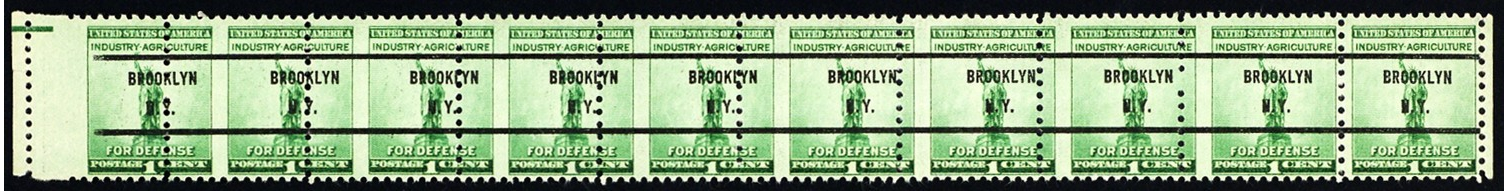 899, Mint OG NH 1¢ Misperforated Error Strip of Ten Brooklyn NY * Stuart Katz
