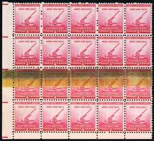 900, MNH 2¢ Double Paper & Tape Slice Freak Error Block - Stuart Katz