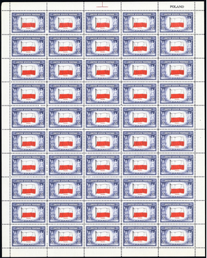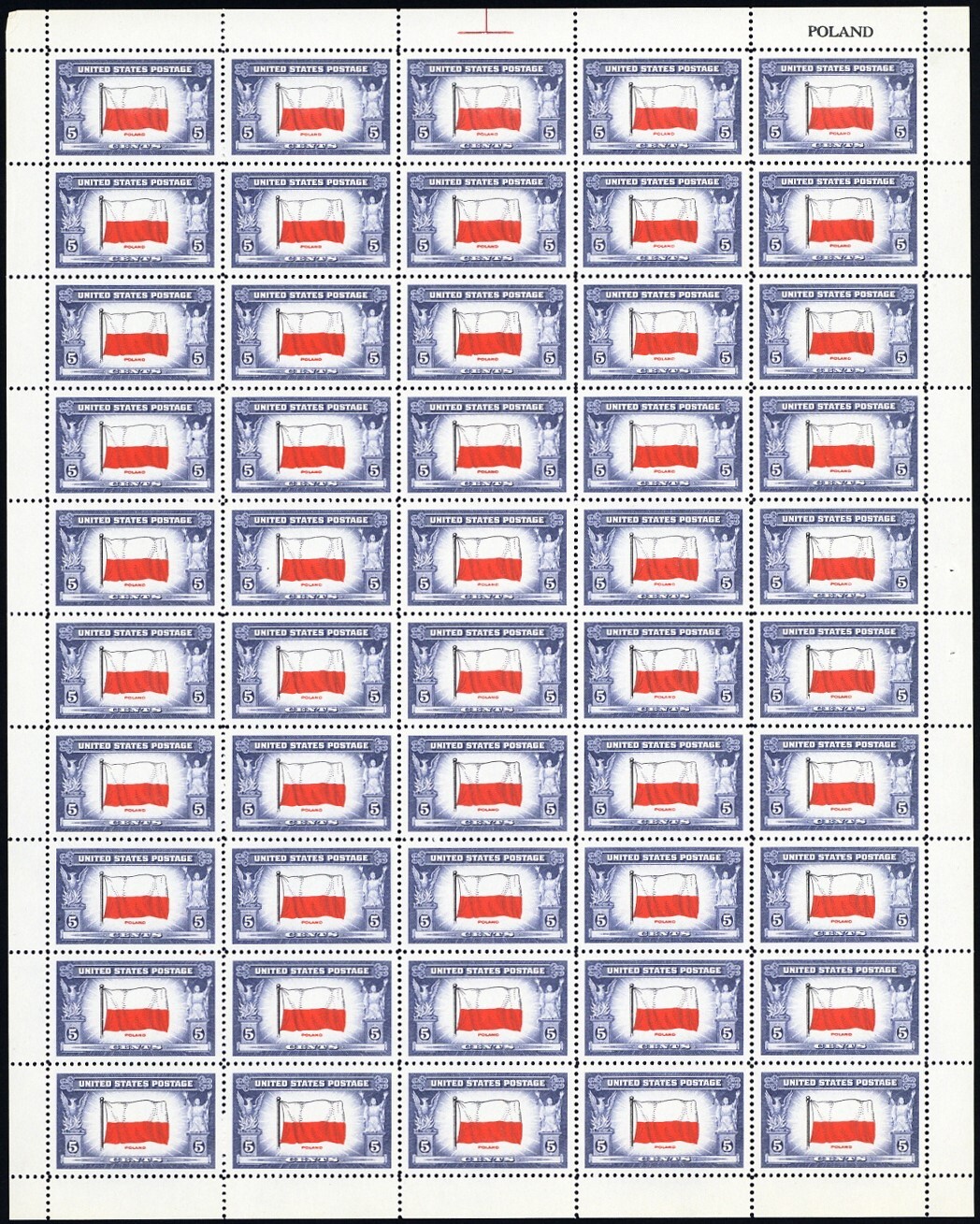 909c, Mint NH 5¢ Reverse Printing of Flag Colors FULL SHEET OF 50 * Stuart Katz