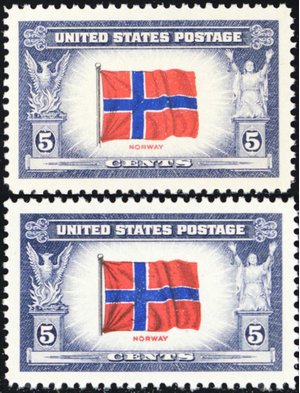 911b, Reverse Printing of Flag Colors VF NH With Normal Stamp - Stuart Katz