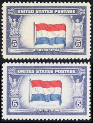 913, MNH 5¢ - Huge Vignette Shift of the Flag Error With Normal - Stuart Katz