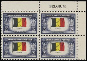 914b, Mint NH 5¢ - Reverse Flag Colors Error Name Block - Stuart Katz