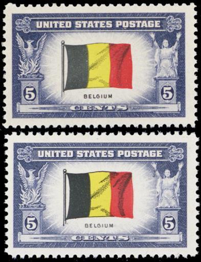 914b, MNH 5¢ Partial Reverse Printing of Flag Colors With Normal -- Stuart Katz