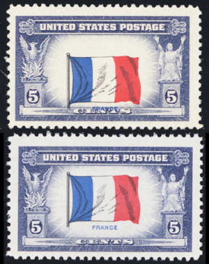 915, MNH 5¢ - Major Vignette Shift of the Flag Error With Normal - Stuart Katz