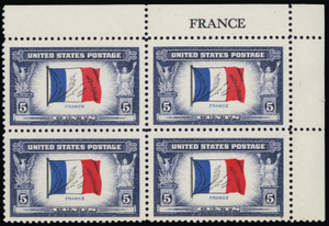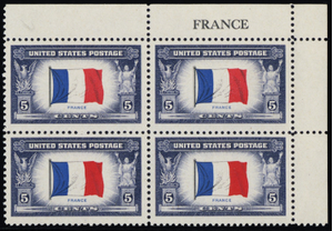 915a, MNH 5¢ Reverse Printing of Flag Colors Plate Block W/Normal - Stuart Katz
