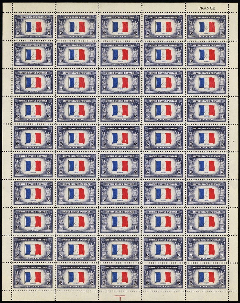 915b, 5¢ France Partial Reverse Printing of Flag Colors - SHEET - Stuart Katz