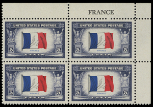915b, 5¢ MNH Partial Reverse Printing of Flag Colors Name Block - Stuart Katz