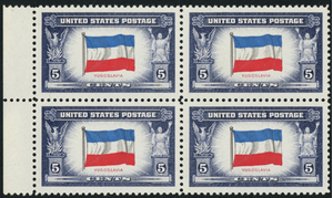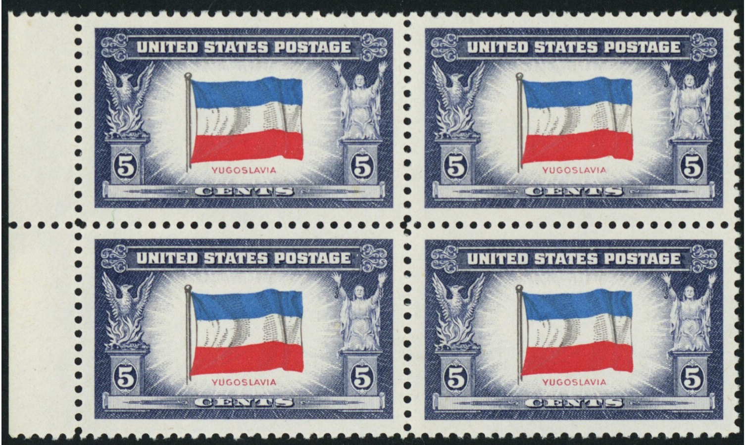 917a, MNH 5¢ Reverse Printing of Flag Colors Block/4 Freak Error Stuart Katz