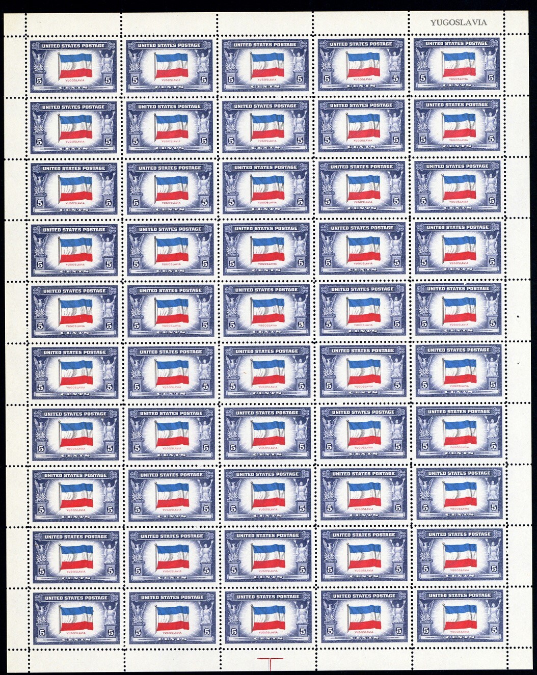 917a, MNH 5¢ Reverse Printing of Flag Colors Sheet With PF Cert - Stuart Katz