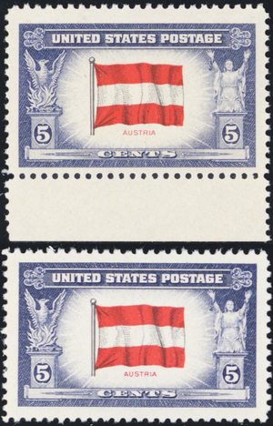 919b, MNH 5¢ Reverse Printing of Flag Colors Error With APS Cert - Stuart Katz