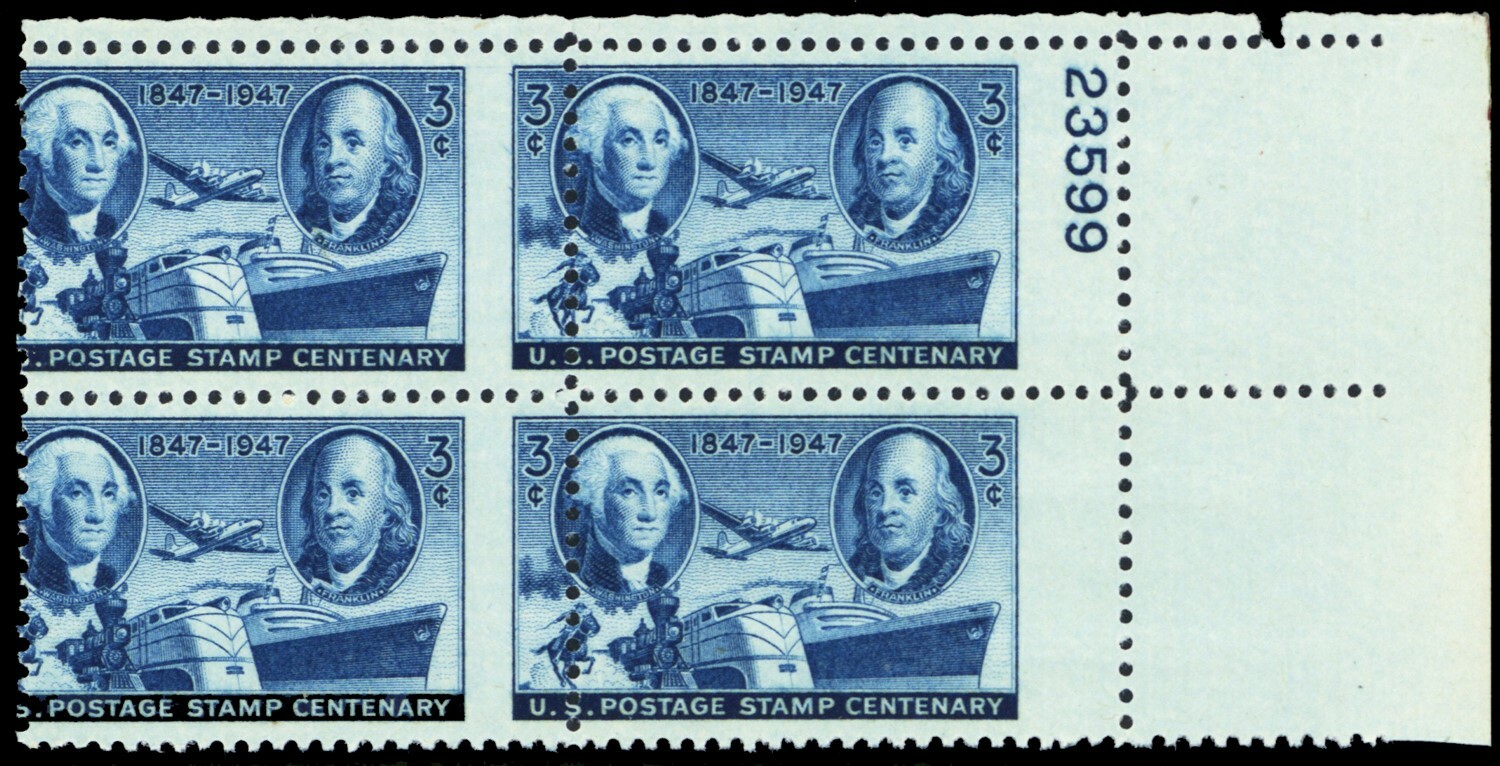 947, Mint 3¢ Freak Error Misperf Plate Block PL# Captured - Stuart Katz