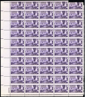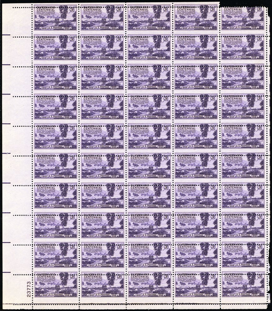 954, Misperforated ERROR Sheet of 50 California Gold 3¢ Stamps - Stuart Katz
