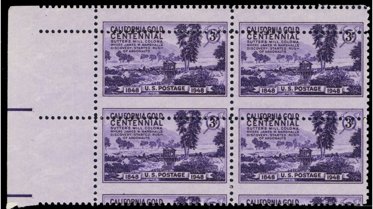 954, MNH 3¢ Misperf Shift Freak Error Block of 4 California Stamps - Stuart Katz