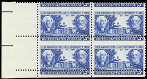 982, MNH 3¢ Misperf Shift Freak Error Block/4 Washington And Lee - Stuart Katz