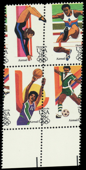 C104a, Mint NH 28¢ Airmail Misperf Block of Four Error Stamps - Stuart Katz
