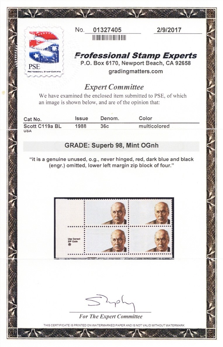 C119a, MNH Superb - Colors Omitted Error Single PSE (Graded 98) * Stuart Katz