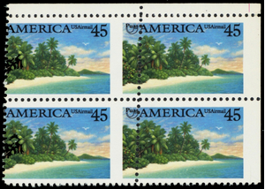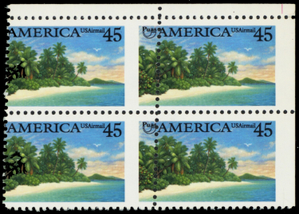 C127, Mint NH 45¢ Misperfed Error Block of Four Airmail Stamps - Stuart Katz