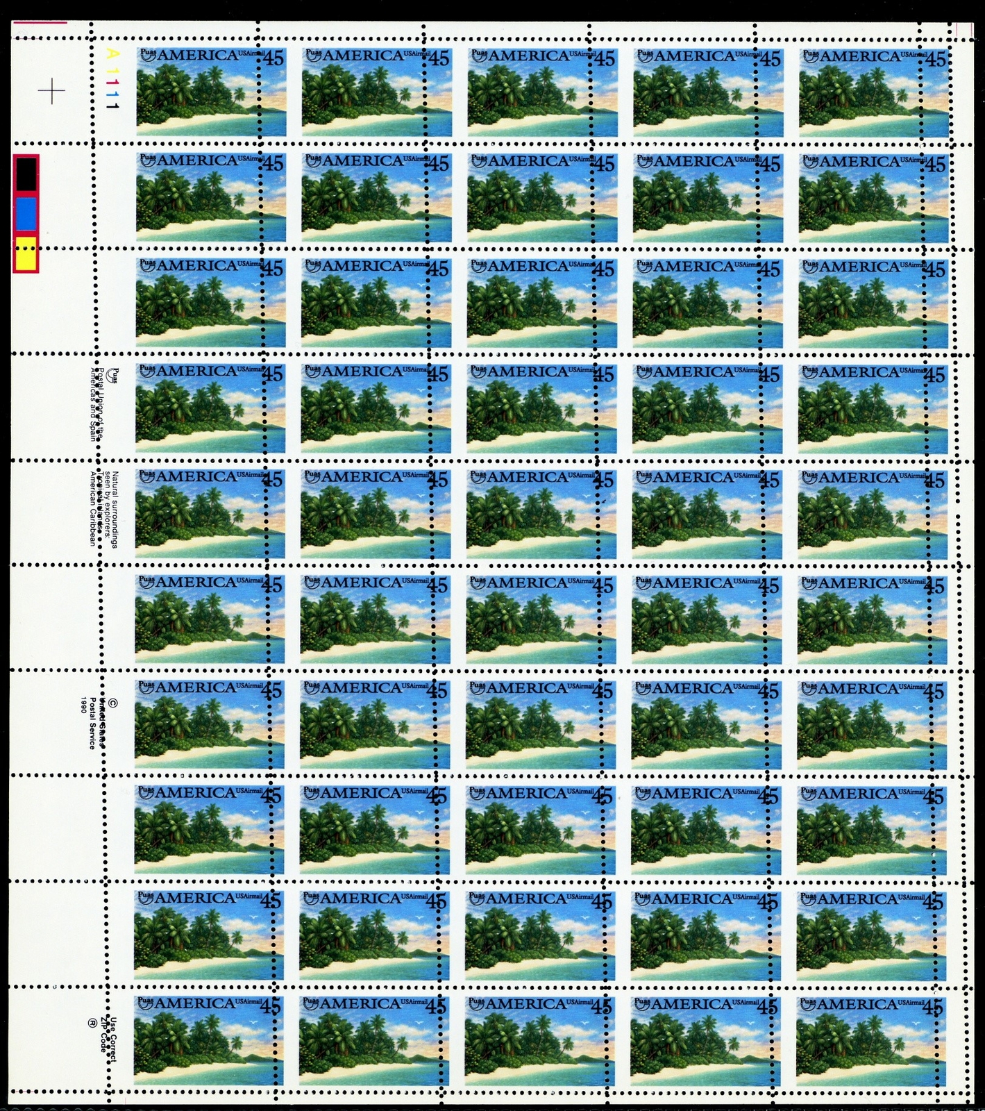 C127, MNH 45¢ Diagonal Misperf Shift Sheet of 50 Shows Gutter - Stuart Katz