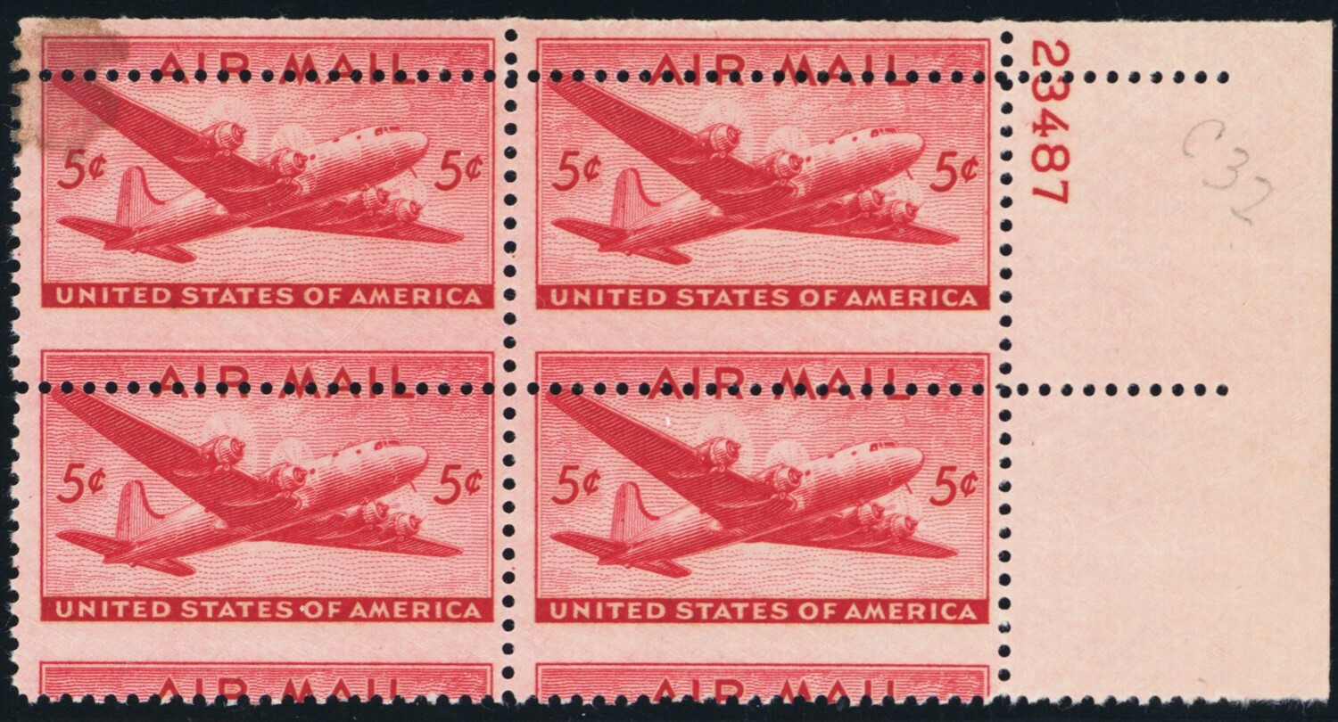 C32, Mint NH Large Misperf Error Plate Block of Airmail Stamps - Stuart Katz
