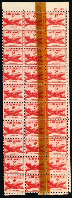 C33, MNH 5¢ P.O. Tape Splice Freak Error Block of 30 Stamps - Stuart Katz