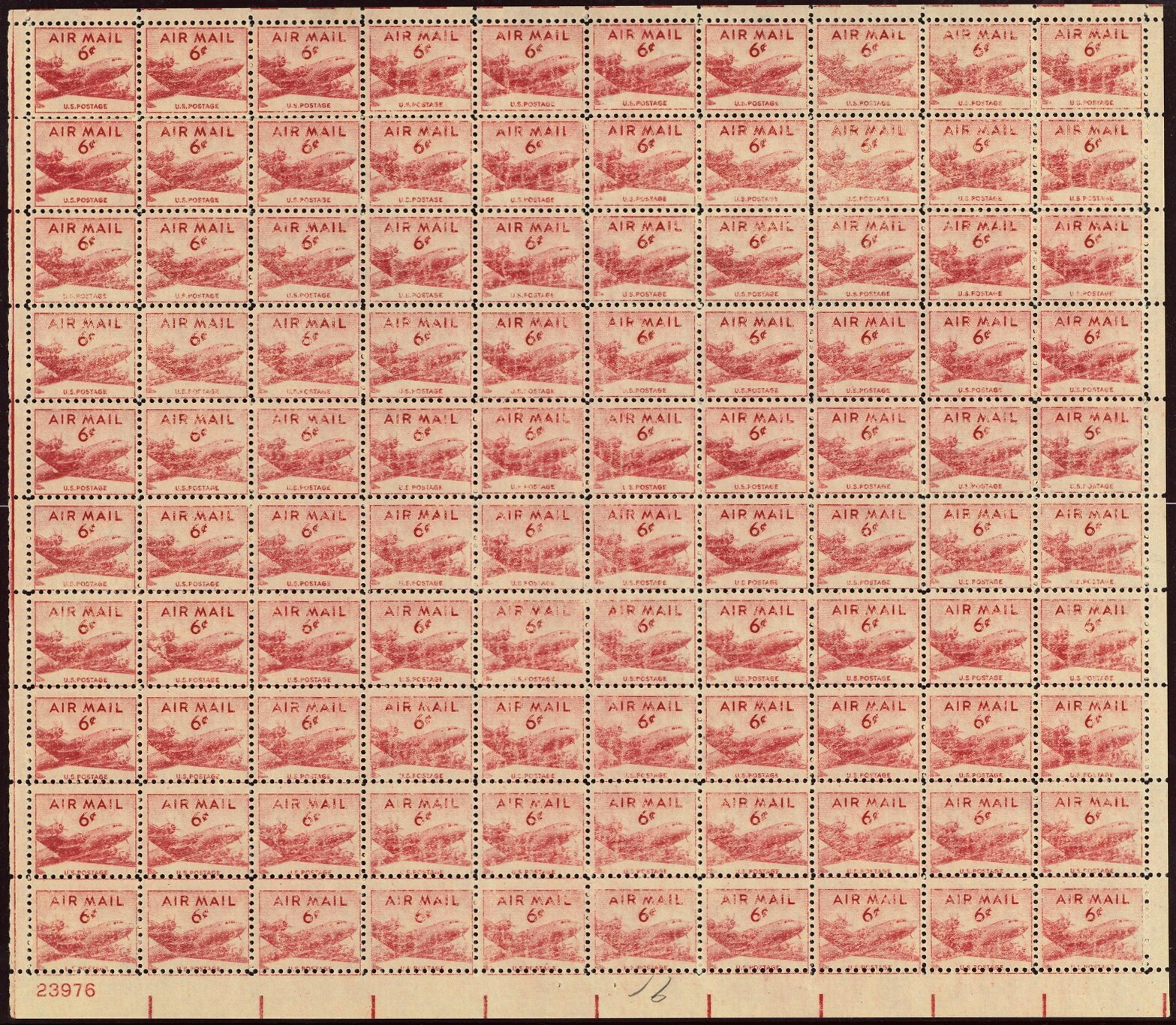 C39, Mint NH 6¢ Dry Printing Error Complete Sheet of 100 Stamps - Stuart Katz