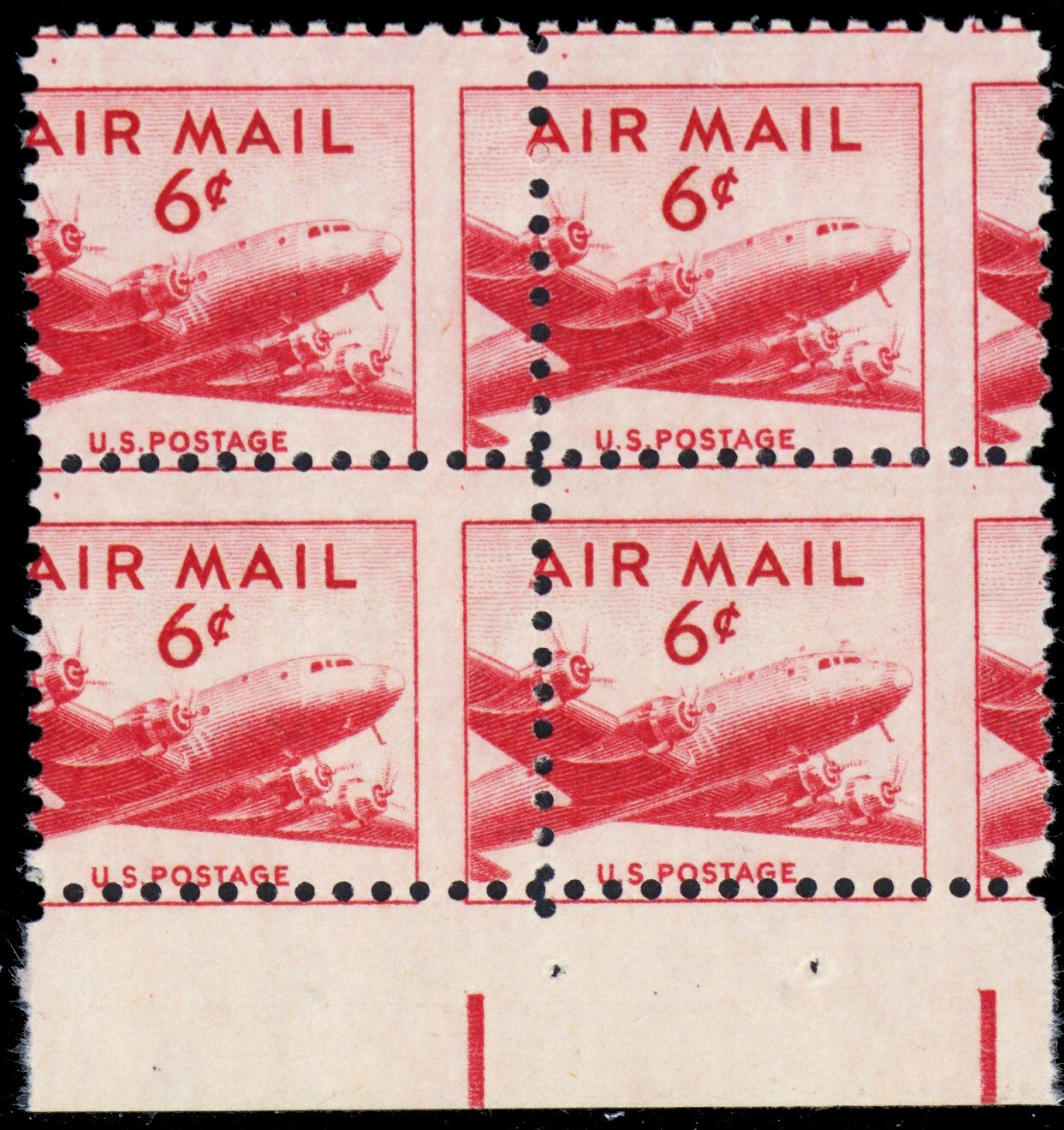 C39, Mint NH 6¢ RARE Airmail Misperf Freak Error Block of Four -- Stuart Katz