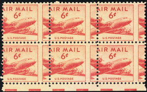 C39, Misperforation Error Block of Six 6¢ Airmail Stamps Mint NH - Stuart Katz