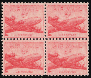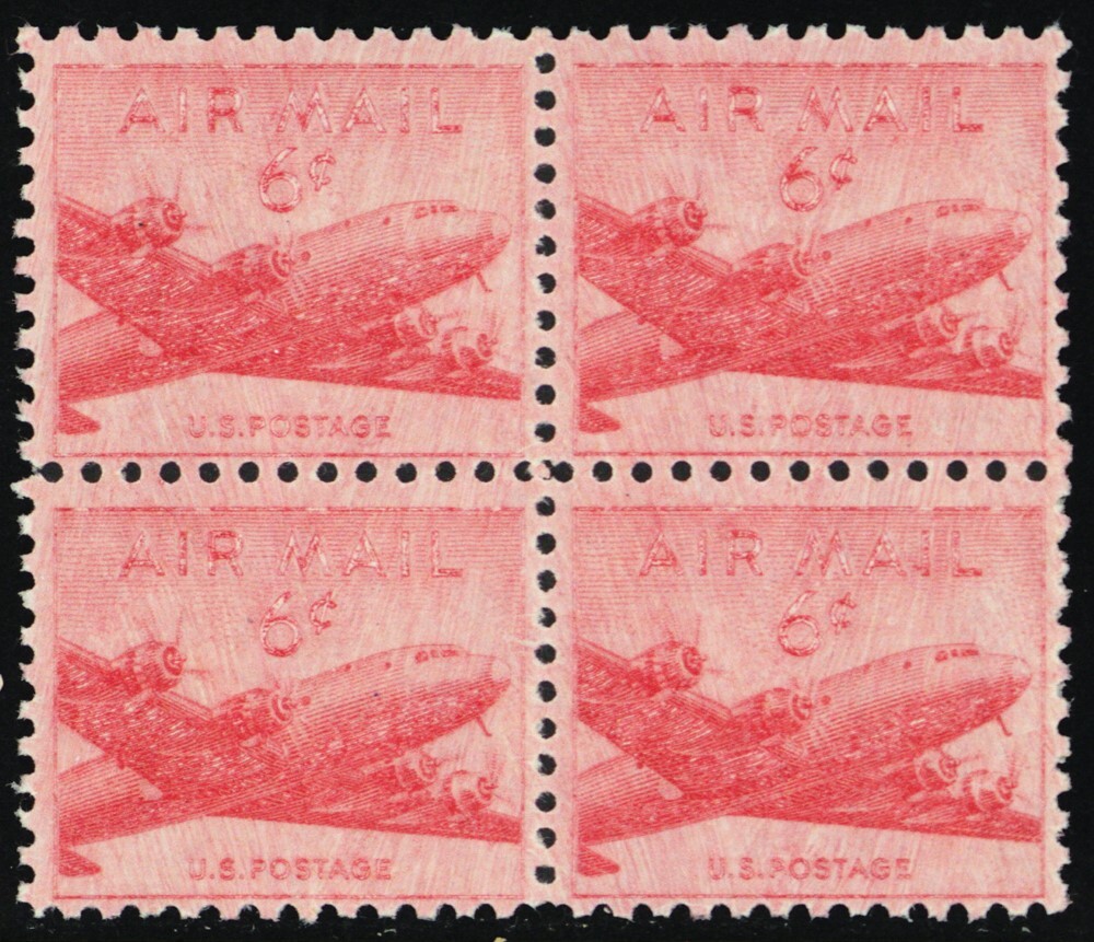 C39, MNH 6¢ Under Inked Freak Error Block of Four * Stuart Katz