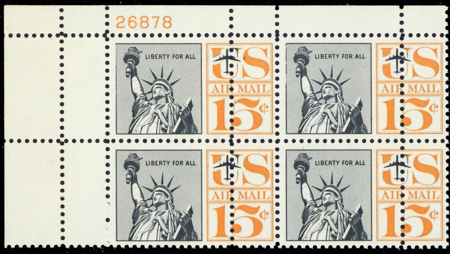 C63, Mint NH 15¢ Rare Double Perforations Error Plate Block - Stuart Katz