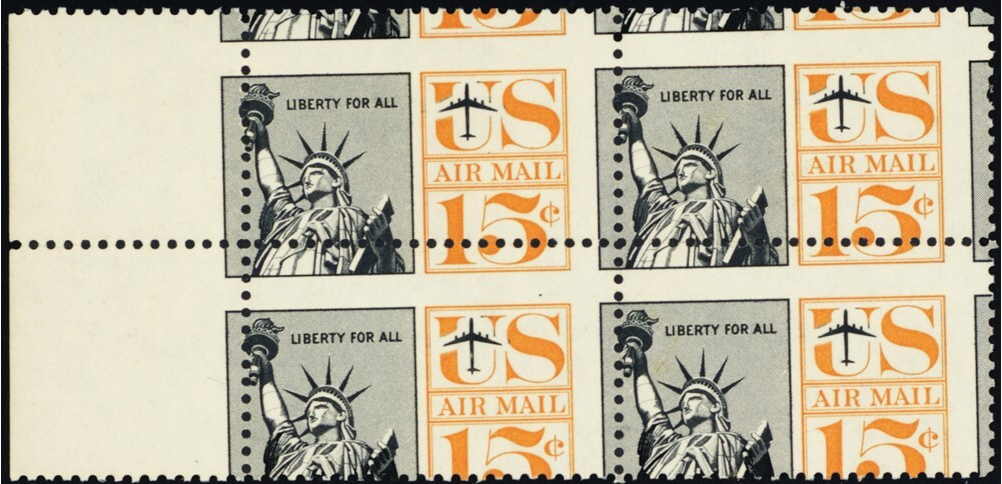 C63, MNH 15¢ Diagonal Misperfed Error Block of 4 Airmail Stamps * Stuart Katz