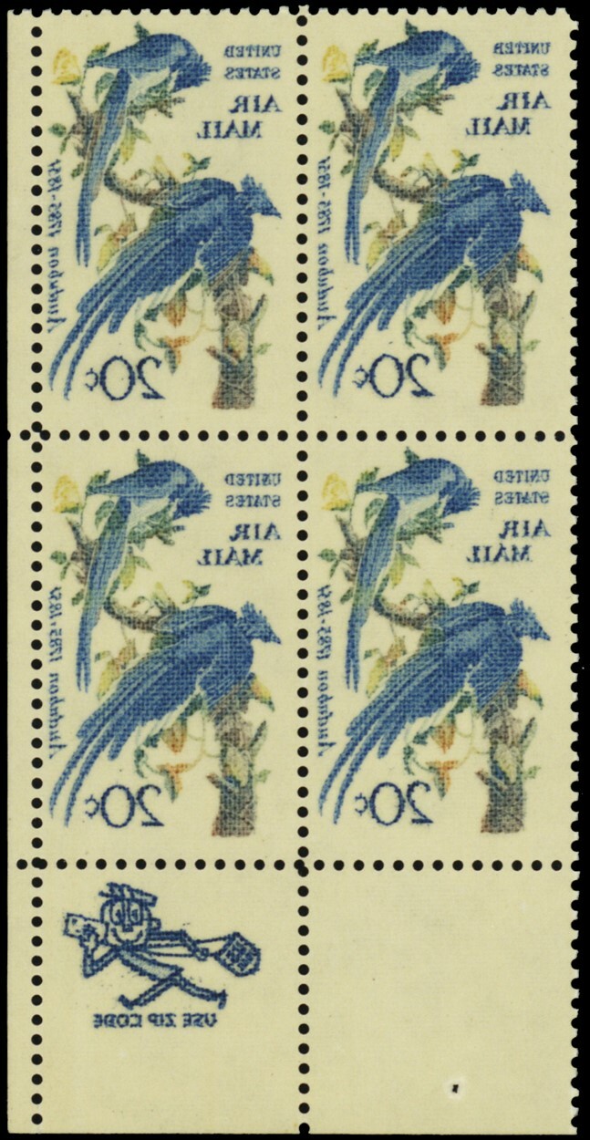 C71, MNH 20¢ Full Reverse Printing Under Gum Zip Block Error * Stuart Katz