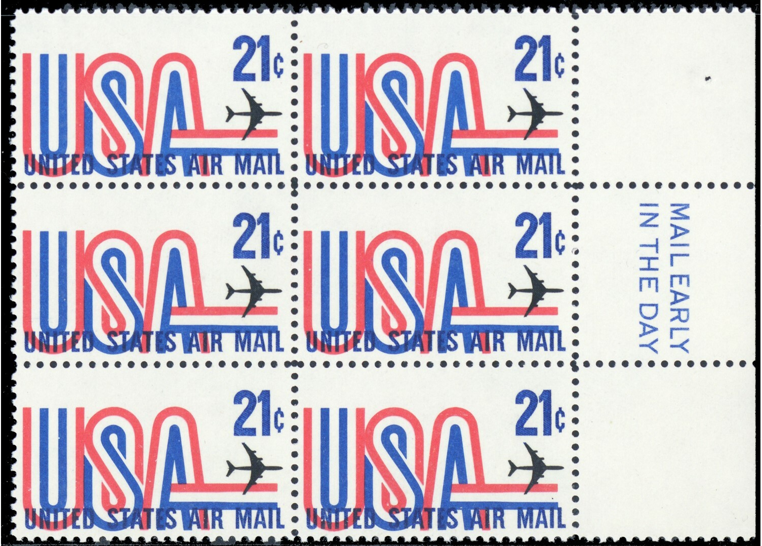 C81, Mint NH 21¢ Color Shifted Error Mail Early Block of Six - Stuart Katz